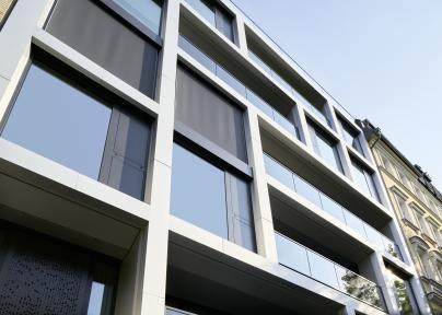 The 12- to 13-storey building offers 1,900 m² of space on the first floor and 1,200 m² on each of the standard floors. With a height of 59 meters, the high-rise building serves as a landmark and connects the listed buildings with their surroundings.