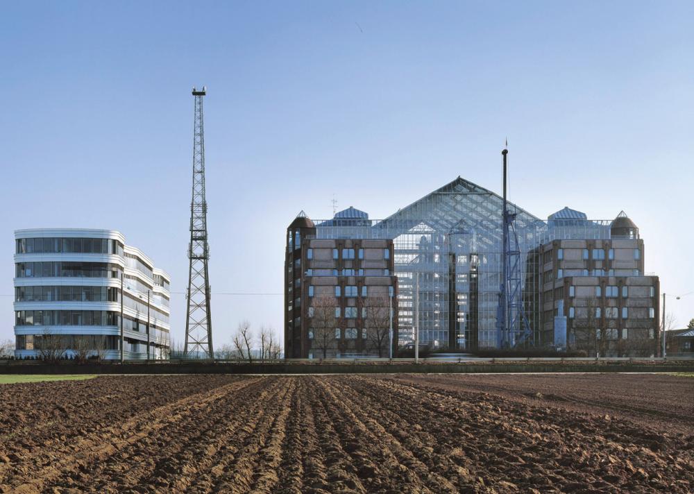 The construction company headquarters, designed by Gottfried Boehm and initially occupied in 1984, is located to the south of the busy Vaihinger Strasse and surrounded by office buildings from the seventies and eighties. Built seventeen years later, the addition is situated on the east side of this building, which is very striking with its four red-toned façades with industrially fabricated façade panels and window frames. The new architecture readily reflects the proportions of its large neighbor but takes a completely different path in terms of shapes, colors, materials, and construction.