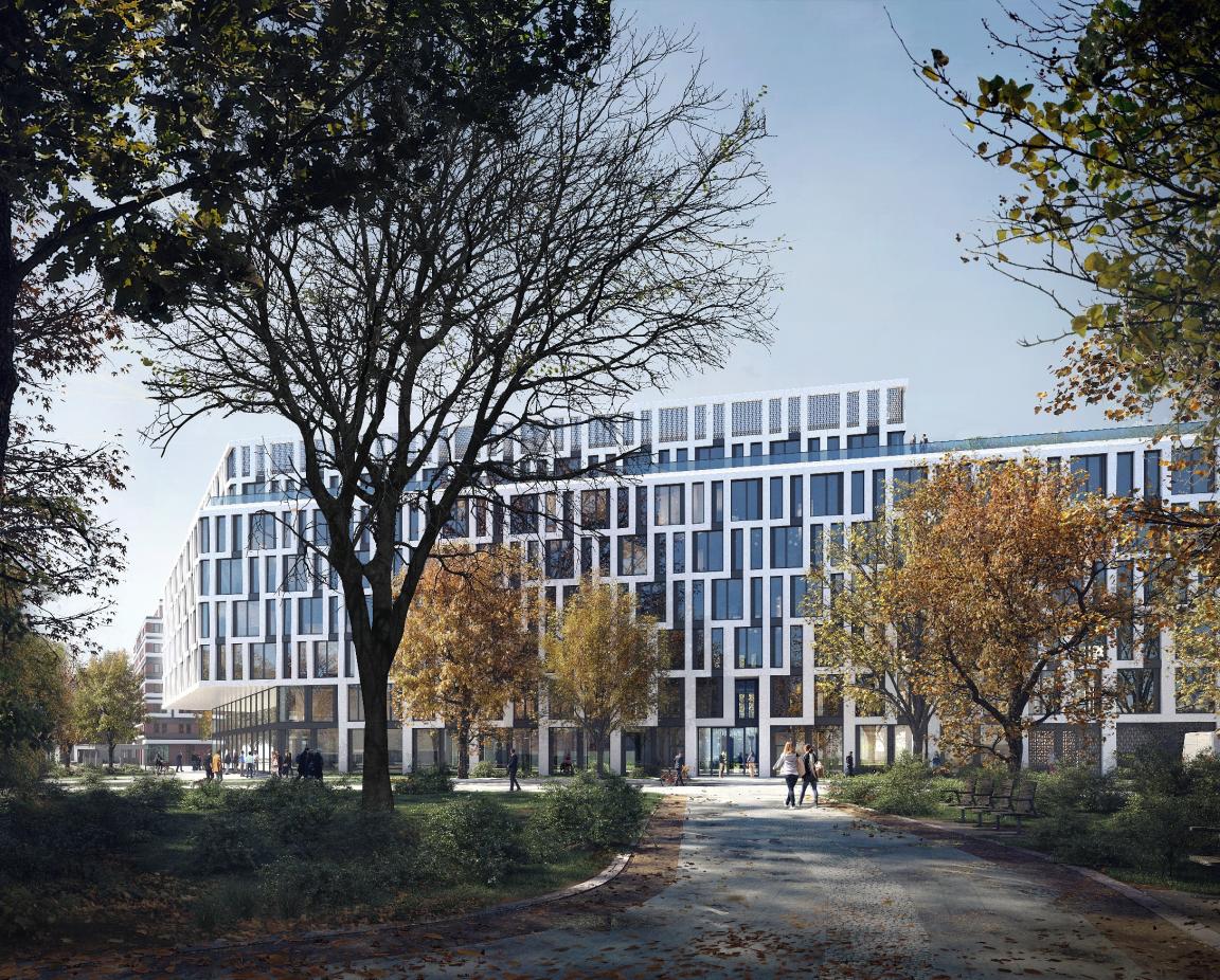 Für das Bürogebäude an der Ecke Meierottostraße/Pariser Straße wurde die Baugenehmigung erteilt. Wir befinden uns gerade in der Werkplanung. Mieter- und Vergabegespräche laufen. Das 11.332 m² große Gebäude wird auf sechs Etagen flexible Büroflächen für unterschiedliche Mieter bieten: