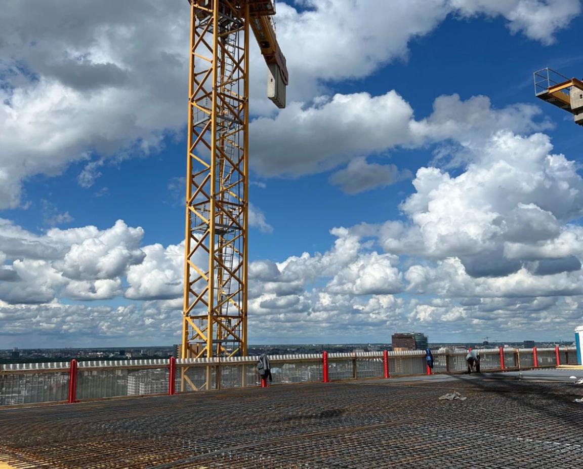 Aktuell werden die Träger für das 22. OG eingebracht und die Decke entsteht.