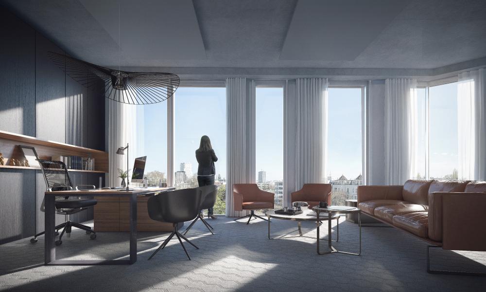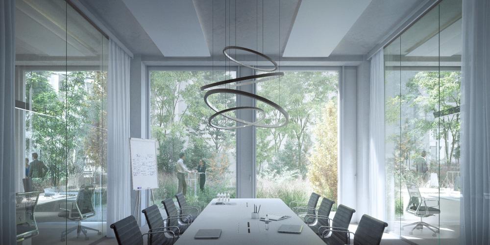 Das Gebäude erfüllt höchste Ansprüche an Flexibilität und Nachhaltigkeit. Die Zuschnitte der lichtdurchfluteten Räumlichkeiten können einfach an die unterschiedlichen Bedürfnisse der Nutzer angepasst werden. Einzel-, Doppel-, Team-, Gruppen- oder Kombibüros bieten maßgeschneiderte Lösungen für die unterschiedlichsten Wünsche. Hot desking, Dedicated desks und Private offices können hier im Wechsel ein neues Ökosystem für Arbeiten entstehen lassen.