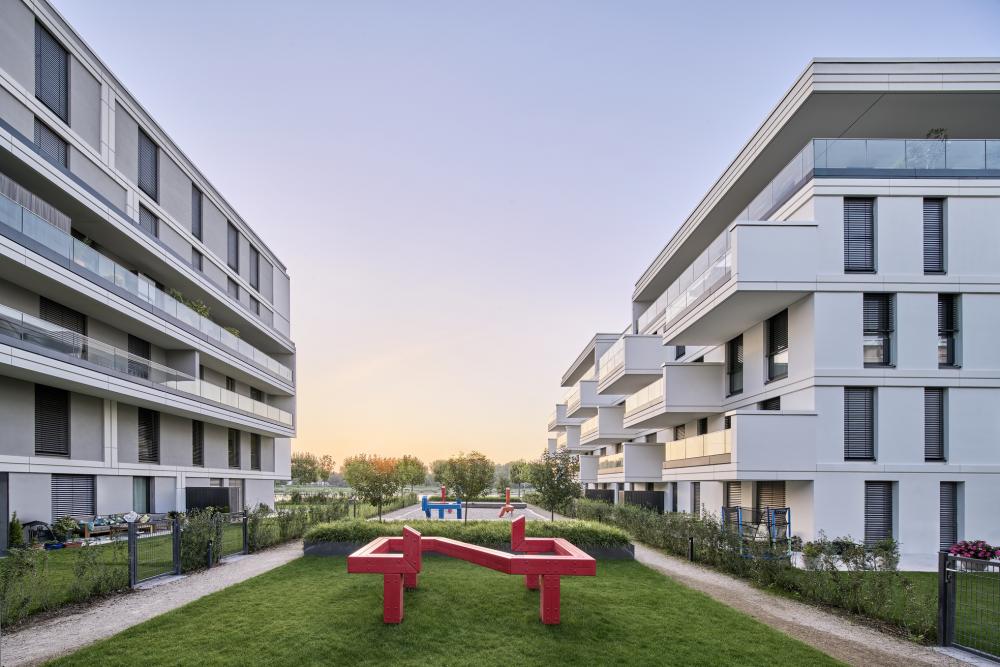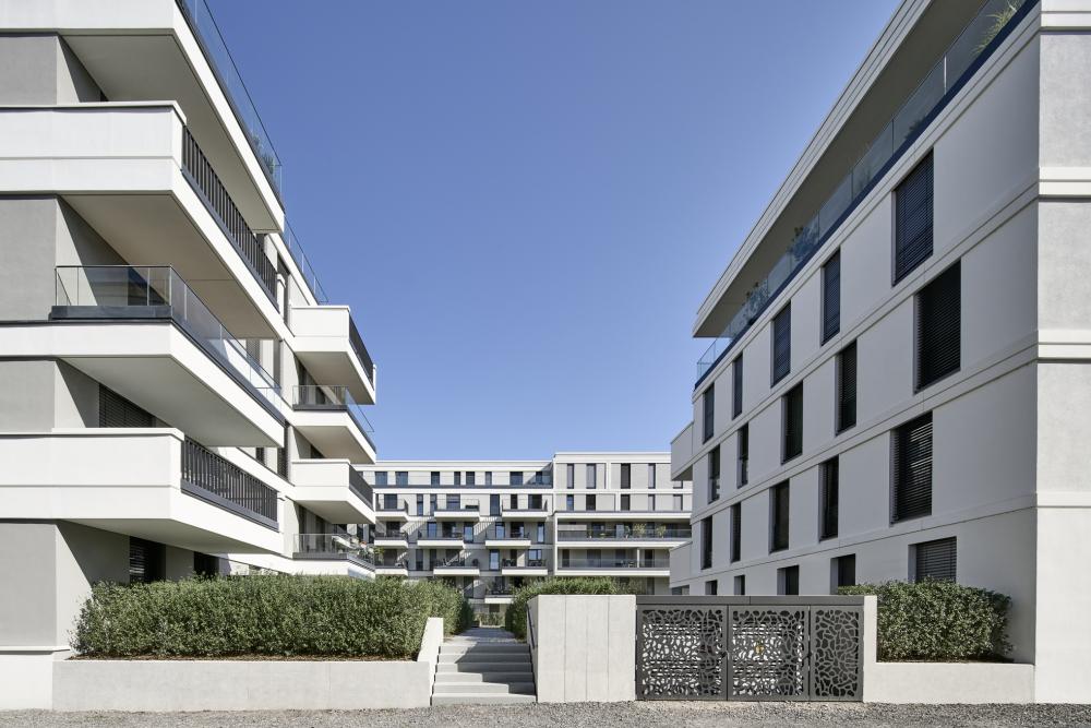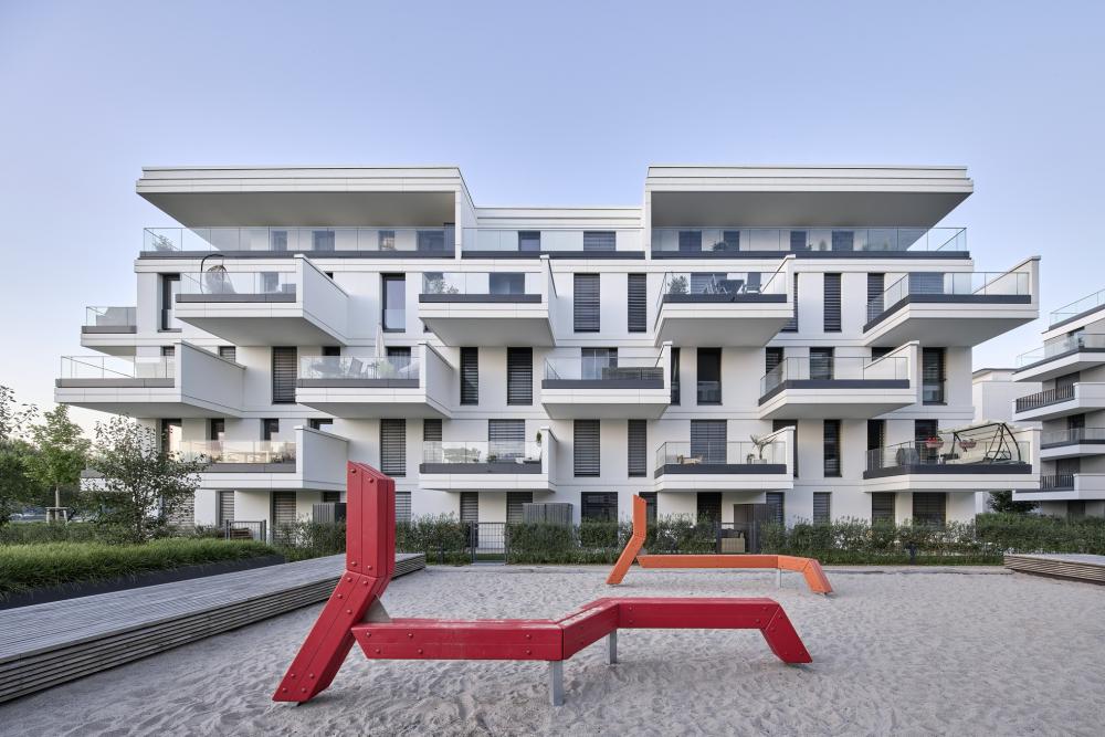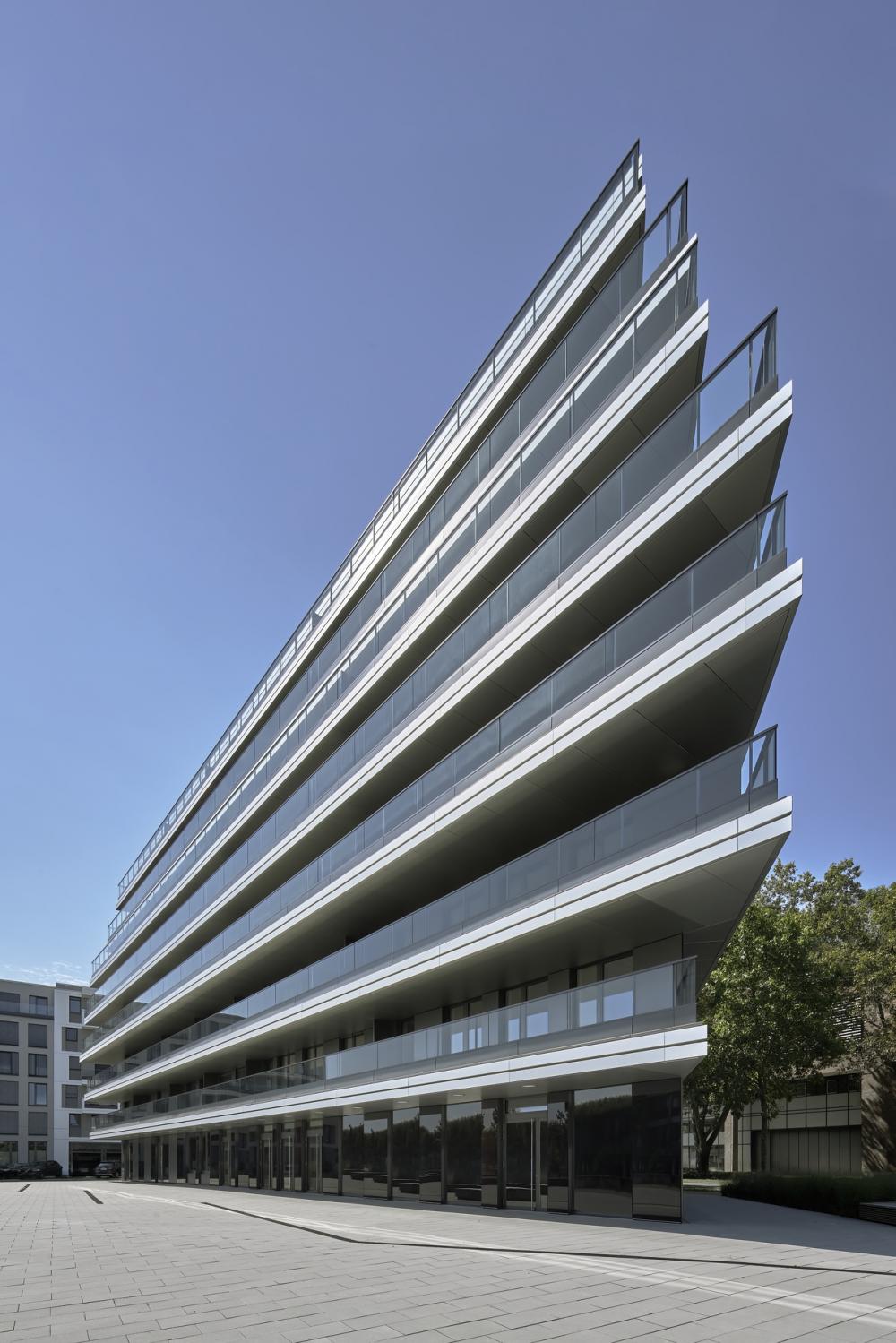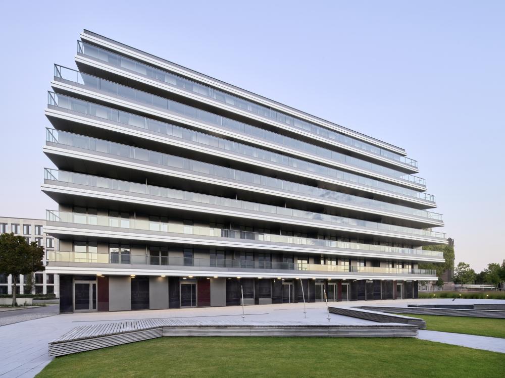 Am südlichen Rhein-Ufer in Ludwigshafen sieht das städtebauliche Konzept ein urbanes Quartier mit 1.000 Wohnungen und bis zu 3.500 Arbeitsplätzen vor. Eine hochwertige, moderne Gebäudearchitektur und ein aus Promenaden, Plätzen und Privatgärten bestehendes Freiflächenkonzept sollen für maritimes Flair und frischen Wind an der Rhein-Promenade sorgen. Das von Eike Becker_Architekten gestaltete Gebäudeensemble bildet das imposante Entrée des neuen Quartiers. Das BEAUFORT ist ein spitz zulaufendes, achtgeschossiges Solitärgebäude, das skulptural und majestätisch wie ein Kreuzfahrtschiff im Hafen liegt. Es wird ergänzt durch das aus einem sechsgeschossigen Gebäuderiegel und einem fünfgeschossigen Punkthaus bestehende HEIMATUFER. Gegeneinander versetzte Sichtblenden gliedern die Fassaden vertikal. Großformatige Fensterfronten bilden im Wechsel mit der metallverkleideten Fassade die horizontale Gliederung. Dadurch entsteht ein fließender Effekt, der die Strömung des Rheins widerspiegelt. Ankerplatz für die Bewohner und Besucher des neuen Quartiers wird die Rhein-Promenade sein, wo Grünanlangen zu Bewegung und Begegnung, Gastronomie und Geschäfte zum Flanieren und Terrassen zum Entspannen einladen.