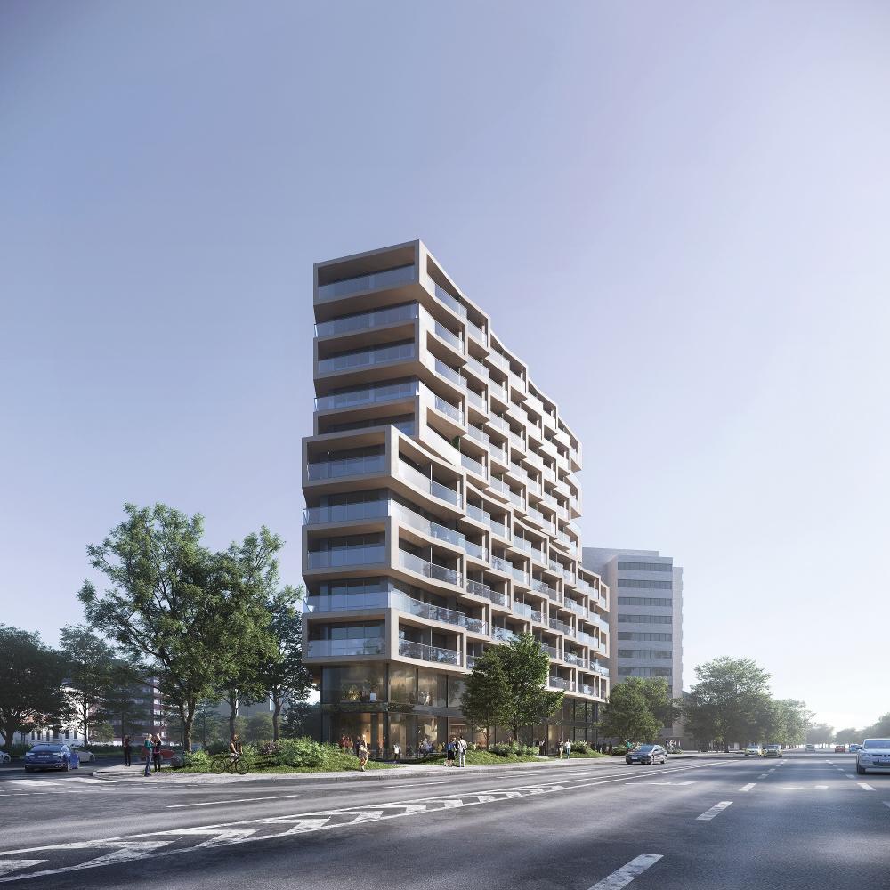 Auf dem spitz zulaufenden Grundstück an der Kreuzung Kennedyallee und Stresemannallee gestaltet Eike Becker_Architekten ein Hotel mit 181 Zimmern. Angesichts der städtebaulichen Situation und der anspruchsvollen Geometrie des Grundstücks wurde in Abstimmung mit dem Stadtplanungsamt eine Kubatur entwickelt, die die bestehende Bebauung fortführt und eine prägnante Eckbebauung an der Kreuzungssituation erreicht.