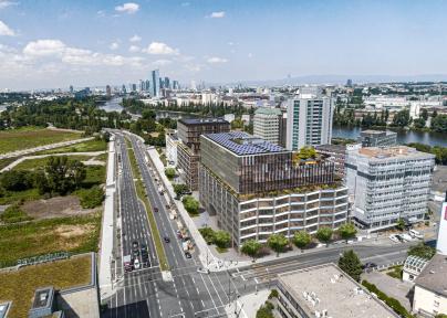 Die Planung umfasst ein großzügiges Erdgeschoss, ein markantes Sockelgebäude mit fünf Obergeschossen, einen Hochhausbereich mit zwölf Obergeschossen sowie ein funktionales Untergeschoss, das PKW-Stellplätze bereitstellt. Ein zweiter, harmonisch gestalteter Gebäuderiegel im westlichen Grundstücksbereich formt einen üppig begrünten Innenhof im zweiten Obergeschoss sowie einen geschützten Hof im Erdgeschoss („Westhof“) entlang der westlichen Grundstücksgrenze. Die Westfassade des Innenhofs ist dynamisch nach oben abgestuft und stilvoll begrünt.