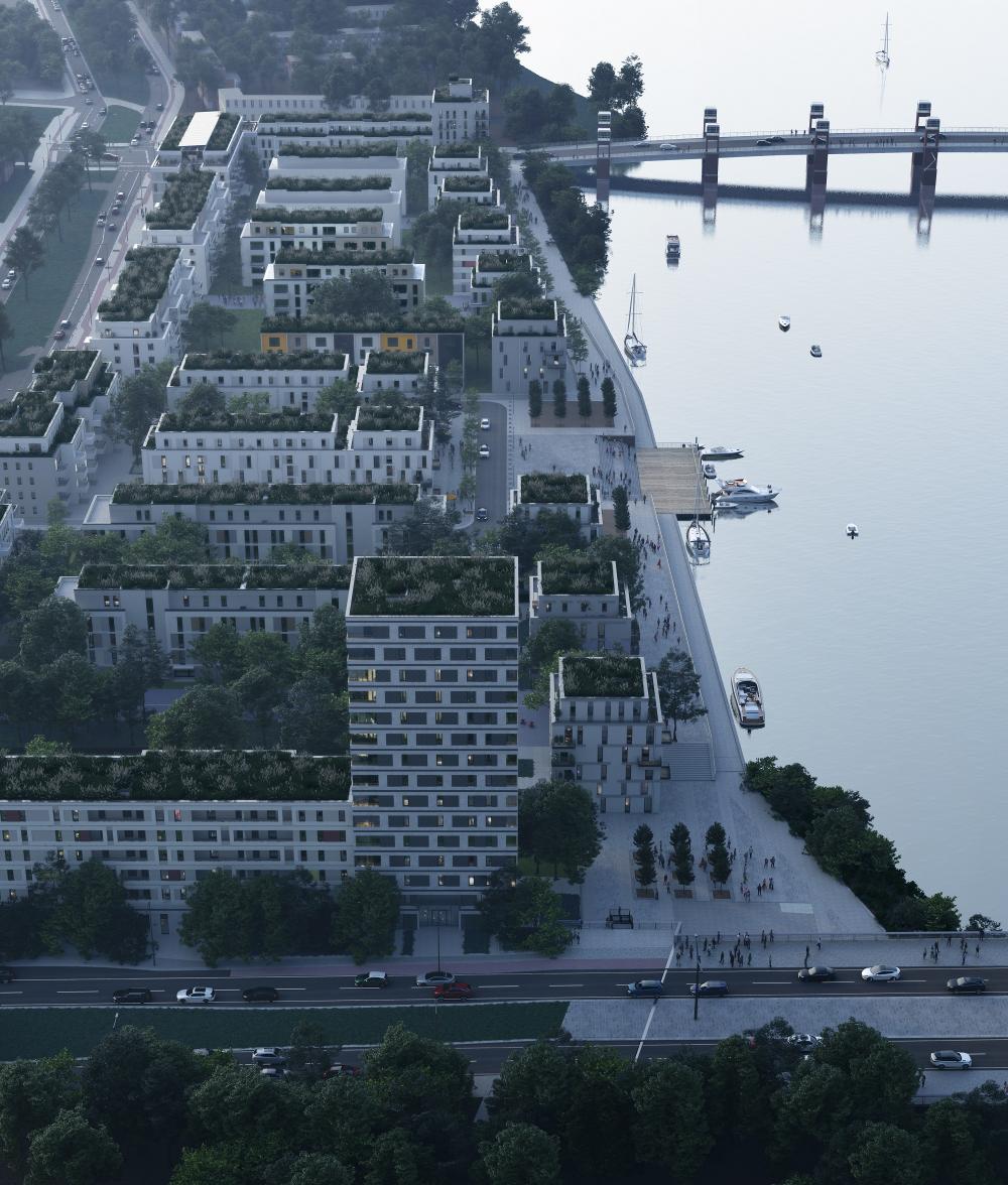 Die Wasserstadt Oberhavel ist eines von 13 Berliner:innen Entwicklungsgebieten, in denen die kommunalen Wohnungsbaugesellschaften moderne Formen des sozialverträglichen Wohnungsbaus realisieren und damit mehr preisgünstigen Wohnraum schaffen sollen. In einem umfangreichen Ausschreibungs- und Qualifizierungsverfahren der GEWOBAG haben sich Eike Becker_Architekten als Projektentwickler und Generalplaner durchgesetzt. Gemeinsam mit Dahm Architekten und der Convis werden bis 2021 insgesamt rund 2000 Wohnungen in vier Teilabschnitten realisiert. Das neue Quartier wird ein vielfältiges Wohnangebot für alle Lebensphasen und unterschiedliche Lebensentwürfe bieten. Das Konzept sieht eine grüne Wohlfühlstadt mit hoher Wohnqualität und einem lebendigen nachbarschaftlichen Miteinander vor.